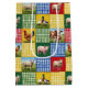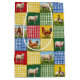 A colourful patchwork quilt design featuring gingham fabric and farm animals
