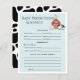 This cute and modern baby shower baby predictions & advice card features a pig, chicken, and cow with a red barn on a baby blue background. The reverse side features a white background with black cow patterns. Personalize for your needs. You can find matching products at my store.