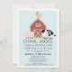 This cute and modern "oink, moo, cock-a-doodle do" boy baby shower by mail invitation features a pig, chicken, and cow with a red barn on a light blue background framed by a white border. The reverse side features a white background with black cow patterns. Personalize for your needs. You can find matching products at my store.