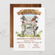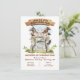 Barnyard Fun! Super fun watercolor farm animals birthday party invitations. Features a grouping of animals you'd find at a farm or petting zoo. Rooster, donkey, horse, goat, calf, cow, pigs, rabbits, chickens and lamb driving in a old farmer's tractor. All wording can be changed. The back is a rustic wood plank background. Great for a boy or girl at any age!