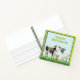 A sketchbook or journal for kids. The farm themed design contains a cow and goat, along with a puppy, on the front. Personalize with the child's name in spring green, using a fun font. The animal design works for boys or girls. The square, spiral bound notebook has various paper options inside. The example is for a "sketchbook" where each page has lines on the bottom and is blank on top for drawings. It could also be a writing practice book with larger lines for beginner writers.