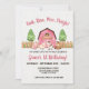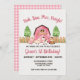 Pink Farm/ Barnyard first birthday girl invitation with Pink Gingham Back.