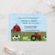 Farm Birthday Invitation for Boys or Girls. Party Invitation has a barn, pigs, a cow and bull, a rooster sitting on top of a red tractor. Customize with your party details.
