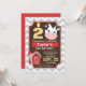 Farm theme birthday party invitation for boy or girl. Invite features grey and white chevron pattern, cow, and red back. 2nd birthday candle can be personalized.