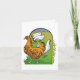 Farm chickens having a feed. This design looks really effective on these Greeting Card