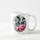 This ceramic coffee mug is shown with a cute farm cow art print.