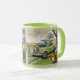 Light Green Ringer Mug with "FARM" Print light green background. JackCrisp.co.uk From an Original ACRYLIC painting by GJLC