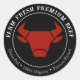 Add a bold and professional touch to your packaging with this Farm Fresh Premium Beef sticker featuring a modern geometric bull head, clean bold fonts, and a strong black background. Highlighting your commitment to grass-fed, pasture-raised, and 100% organic beef, this high-quality label is perfect for butcher shops, farmers markets, organic farms, and premium meat product packaging. Durable and eye-catching, it reinforces your brand values and builds trust with customers who care about where their food comes from.