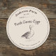 A rustic label sticker for farm goose eggs sellers in brown tones, featuring an artful line illustration of a goose in pastoral style. Texts are fully customizable. It could be perfect for a family farm, food markets, grocery shops, etc.