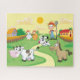 Adorable custom designed farm life scene with cow, horse, dog, chickens and farmer. Fun for the whole family.