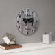 Personalize this custom barnwood styled clock with your farm, ranch, or stable name to add a personal touch to the decor. Perfect for the rodeo or livestock barn. Barnwood look clock face with beef bull cow silhouette in center. Choose one of two sizes and two colors of clock hand, whichever is to your liking.
