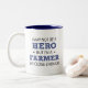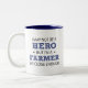 I may not be a hero, but I'm a Farmer so close enough humourous word art in sans-serif and doodle cross-hatch font lettering in black and dark cold blue.