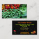 Draw customers to your organic grocery store with this lively business card which features red and gold cherry tomatoes, green beans, snow peas and cucumbers to create a lovely, artistic front. The back has pears, roses and specific text. Customize all text to fit your store.