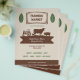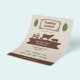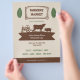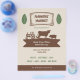 A vintage-style & rustic flyer for a farmers' market, all in beige, brown and green colours. It comes with leaves and a silhouette illustration including a tractor, a cow, a pig and a chicken.