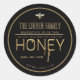 Black label with gold text and border. HONEY is printed in an 'embossed' metallic gold gradient with honey drips. Your farm or apiary name is printed in an open font. Editable text below apiary name for location or honey varietal. "pure-raw-local" may be changed to location and contact info on one line or two. Please contact seller if you'd like help with formatting. Happy Beekeeping!