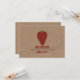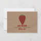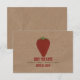 A wedding save the date featuring wrinkled brown paper image background on front and back. Front features an illustration of a strawberry. Personalize the red and green text.