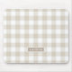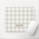 Custom-designed mouse pad featuring beige buffalo plaid/gingham/check pattern with personalized name/monogram.