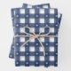 Farmhouse blue and white snowflakes gingham plaid wrapping paper sheet