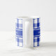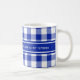 Charming and cheerful farmhouse blue and white buffalo plaid mug with optional text.