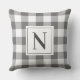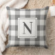 Farmhouse Charcoal Gingham Check Plaid Monogram Throw Pillow