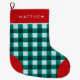 Farmhouse Check Teal Green Buffalo Plaid with Name Large Christmas Stocking