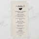 Ce menu mariage rustique et branché présente une ambiance moderne avec son élégant texte noir, sa silhouette de coeur et sa typographie sur un arrière - plan à l'allure de bois blanc.
