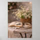 This romantic scene evokes slow mornings, garden air, and peaceful moments of reading and reflection. The neutral tones and vintage textures make it perfect for farmhouse kitchens, cozy reading nooks, cottage living rooms, or French country inspired spaces.