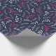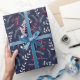 Farmhouse country dark navy blue, red and white foliage, wreath, leaves, rustic pattern cute holiday gift wrapping paper.