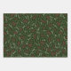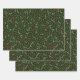 Rustic farmhouse country dark green, red and white foliage, wreath, leaves, foliage botanical pattern cute holiday gift wrapping paper sheets. Set of 3.