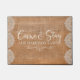 A modern calligraphy door mat that really makes you feel welcome. A great gift for newlyweds or new homeowners, our custom come and stay doormat in elegant burlap and lace features "Come and Stay" in modern, elegant handwritten calligraphy script. Personalize with your family name in classic off white lettering. Designed for you by Blackberry Boulevard.