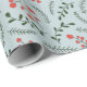 Farmhouse country dusty blue, red and dark green foliage, wreath, leaves, rustic pattern cute holiday gift wrapping paper.