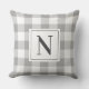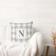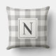 Farmhouse Grey Gingham Check Plaid Monogram Throw Pillow