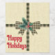Lovely holiday bottle labels feature a country farmhouse style vintage plaid ribbon and bow with winter pine branch and berry embellishment on cream burlap background. Customizable "Happy Holidays" greeting text