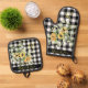 Farmhouse kitchen floral monogram name plaid oven mitt & pot holder set