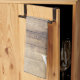 Simple and rustic light barn wood planks design with a white monogram letter at the bottom corner of the kitchen towel.