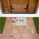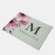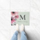 Modern Rustic Farmhouse Monogram Personalized Burlap Sage Green Doormat. Personalize this sage green floral burlap linen-look elegant door mat with your monogram name and initials or a family monogram in beautiful chic script typography. Perfect home decor gift idea.