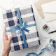 Farmhouse plaid navy off white hand drawn country wrapping paper