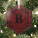 FARMHOUSE RED GINGHAM CHECKERED PLAID GLASS ORNAMENT