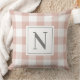 Farmhouse Rose Pink Gingham Check Plaid Monogram Throw Pillow