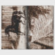 Rustic farmhouse wood barn background with vintage newspaper overlay, and horse stamp.