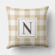 Farmhouse Tan Grey Gingham Check Plaid Monogram Throw Pillow