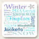 These darling winter words typography coasters will be the perfect addition to your home decor in the winter as well as during Christmas and New Year's. This design features many of the things you experience in the winter, all in a variety of fonts in blue and grey colours.