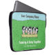 Dairy Farming Illustration shows cattle feeding a a cattle-trough. Dairy Farmer laptop bag cover. Farming & Dairy Services on a personalised computer sleeve with cartoon cows