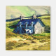 A pretty watercolor of a Welsh stone farmhouse nestling in the mountains of Wales UK.