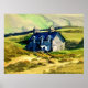 A pretty watercolor of a Welsh stone farmhouse nestling in the mountains of Wales UK.