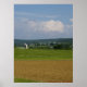 Beautiful rolling hills in the Amish farmlands of Pennsylvania with the rich red soil and vibrant green trees.