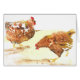 Two fat farmyard chickens enjoying the their freedom and pecking for grain. Our chickens live in the orchard but love to sit at the kitchen door in the sun waiting for titbits.