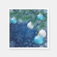 Add a touch of elegance to your Christmas dinner with these stylish dinner napkins featuring white snowflakes falling from a magical blue sky. Green Christmas pine tree branches and white and blue Christmas balls give it a festive look. Perfect Christmas gift for your loved ones