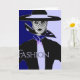 Stylized image of fashion model in big hat. Design is in black, dark blue, and a light purple with a touch of white and grey. The word "Fashion" is at the lower left corner
