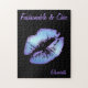 A lovely fashionable and chic jigsaw puzzle, this item features a black background with blue neon lips. "Fashionable & Chic" with cursive blue font and his name on the bottom. Order yours today!